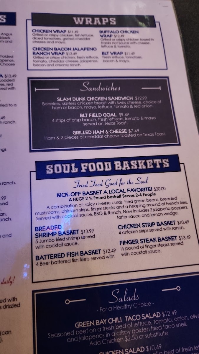 Looking for a lighter option? The fresh Taco Salad offers a flavorful kick, while the Side Salad provides a crisp, refreshing bite. The indulgent KickOff Basket is perfect for groups, packed with a variety of favorites ranging from spicy cheese curds to crispy chicken strips.